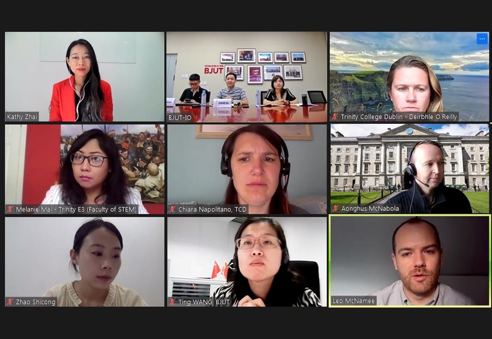 9月15日下午,北工大与爱尔兰圣三一大学举行线上合作洽谈,双方国际处及相关学部院负责人参会。