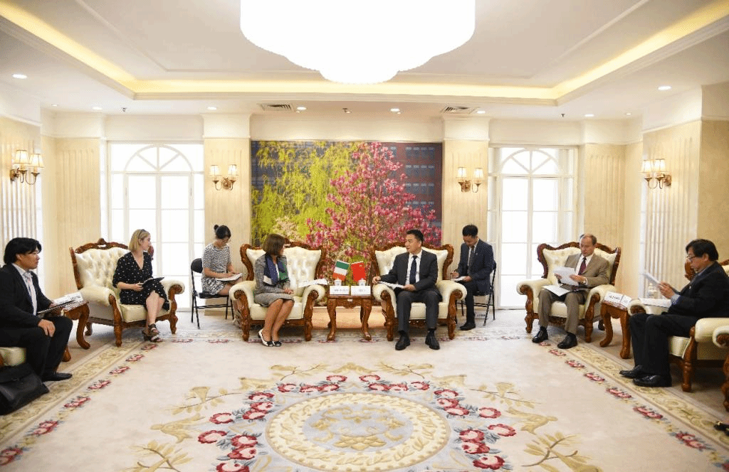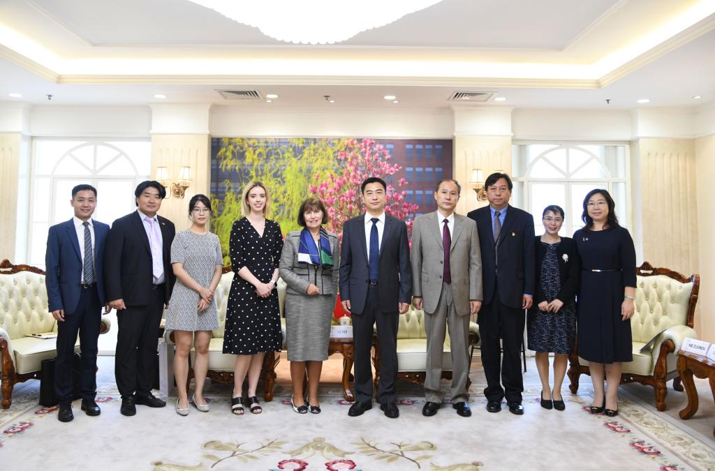 9月8日,爱尔兰驻华大使安黛文(Ann Derwin)一行访问伟德国际唯一官网入口并出席北京-都柏林国际学院2021级新生开学典礼。校党委书记谢辉,校党委副书记、校长聂祚仁代表学校会见了安黛文大使一行,副校长郭福,国际交流合作处、都柏林学院负责人陪同会见。
