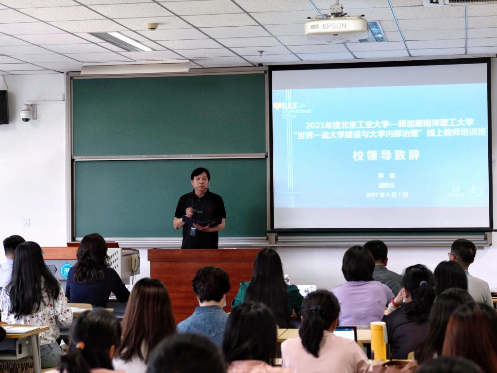 北工大2021年度“世界一流大学建设与大学内部治理”线上教师境外培训班由新加坡南洋理工大学承办,于6月1日至7月6日间每周二、周四下午以“线上云端授课,线下集中听课”的方式进行,共计10节课,30个课时。经前期遴选推荐,共有来自相关职能部处、学部(院)的45名管理人员参加,其中包括16名中层干部和29名一线管理人员。