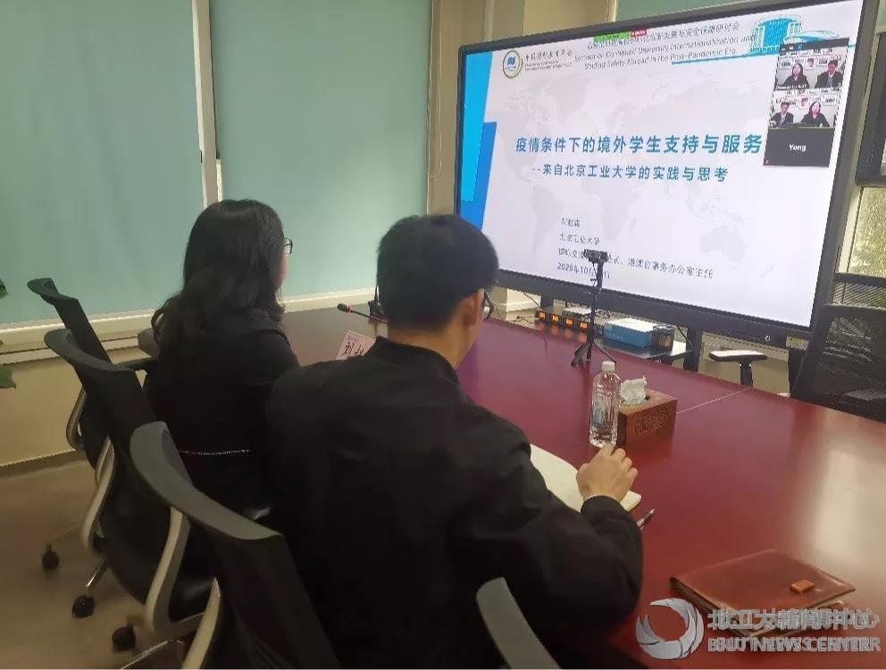 本届国际教育周正值第21届中国国际教育年会在京召开,北工大受邀在“后疫情时期高校国际化创新发展与安全保障研讨会”上作主题发言,分享了疫情时期服务和支持境外交流学生的北工大方案,得到了与会人员与主办方的好评。