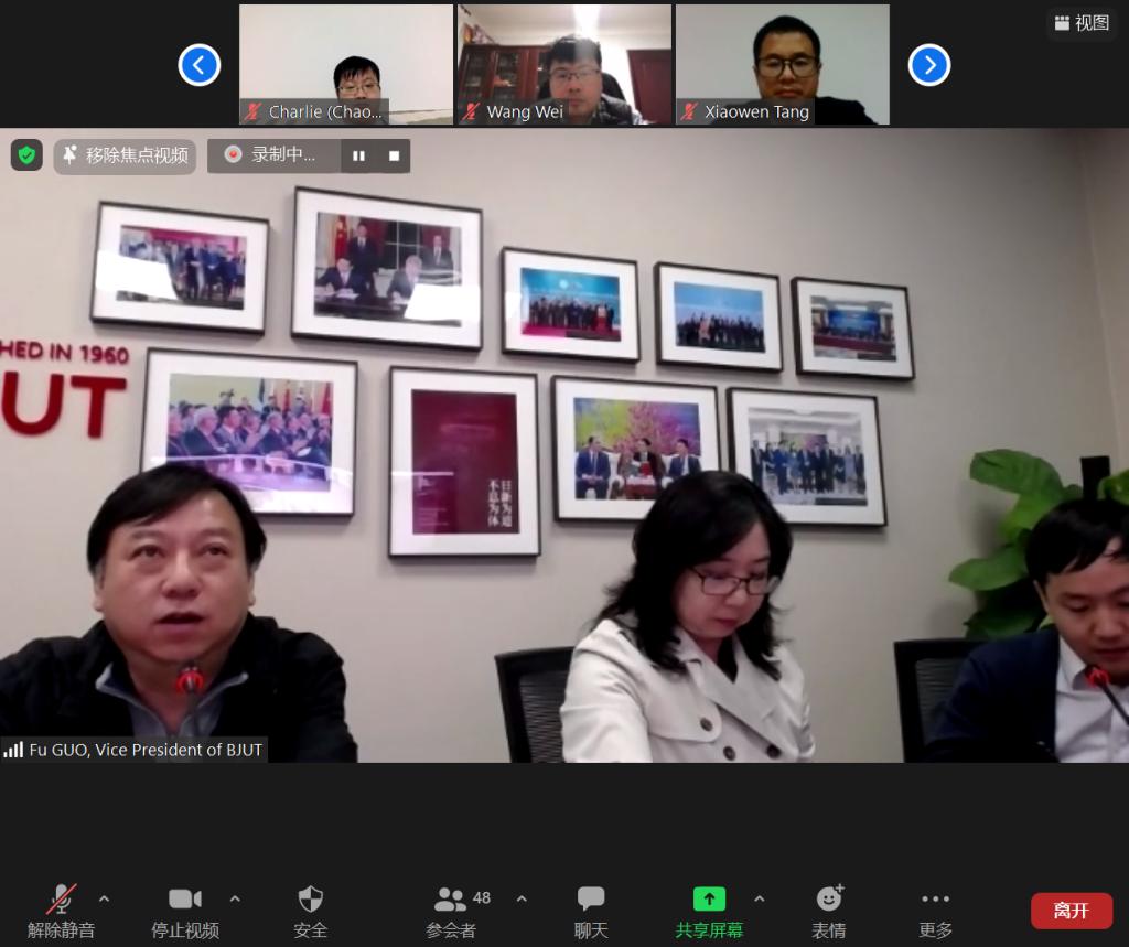 郭福副校长在致辞中指出,教师境外培训是学校教师国际化能力提升的重要途径。虽然受新冠肺炎疫情影响,国际旅行和交流受到了较大限制,但学校依然希望通过云端授课的创新模式,帮助教师们提升国际交往能力。他强调,培训班学员一是要借鉴学习美国马里兰大学先进的高等教育办学理念和管理经验,拓展国际视野,提升职业素质和专业管理能力;二是要以服务首都“四个中心”建设和国家重大战略需求为导向,将培训成果融入到学校整体发展中,助力学校双一流建设;三是要成为学校国际化事业的传播者、践行者及融合者,推动学校国际化事业迈上新台阶。同时,他也对学员们提出了具体要求,并希望通过形式丰富的线下、线上活动,进一步巩固在线学习效果,高质量完成培训。