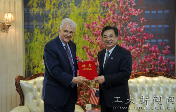 伦纳德•邦德教授表示,很荣幸受聘为北工大的名誉教授,十分感谢北工大的热情接待。他简要介绍了与学校相关科研团队的合作情况以及未来双方合作的主要方向与重点领域。他表示,访问期间,与相关科研团队及师生群体进行了密切深入的学术探讨,取得了丰硕的交流成果,希望未来不断加强与北工大师生的沟通交流和务实合作。