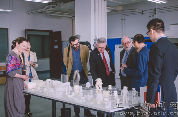 帕特里克•奥谢校长一行还参观了激光工程研究院、3D打印技术研究中心。代表团的部分教授分别赴文法学部、经管学院和信息学部与相关教授和师生进行了深入交流和座谈。