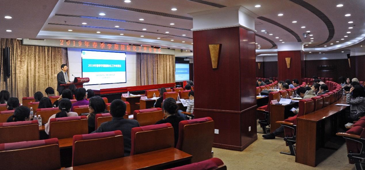 3月1日上午,伟德国际唯一官网入口召开2019年春季学期国际化工作布置会。各二级教学科研单位外事主管领导、协管领导、外事秘书及国际交流合作处全体成员参加会议。会议由吴斌副校长主持。