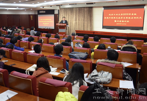 1月4日下午,北工大召开2019年赴境外交流学生行前培训会。副校长吴斌出席会议,相关院部处负责人、各学院外事秘书、2018-2019学年春季学期赴境外长期交流学习及2019年寒假赴境外短期交流学习学生参会。