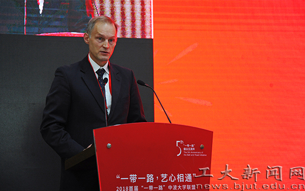 波兰共和国驻中华人民共和国特命全权大使赛熙军(Wojciech Zajaczkowski)致辞。他指出,中波众多著名的大学齐心协力举办“一带一路”中波大学联盟艺术节暨艺术设计大赛,这是一种增进学术、文化合作,以及中波两国人文交流的方式,为学生展示才华、能力和创造力,提供了机会,搭建了平台;同时他表明,中波两国可在艺术和设计领域展开深入合作,吸引更多中波大学积极参与。中波两国的关系同欧盟与中国的双边关系一样,欣欣向荣、蓬勃发展,为了实现共同设立的远大目标,我们需要既能在各自的专业领域出类拔萃,又能与其他国家同僚通力合作的未来精英。希望这次比赛能为众多年轻才俊提供灵感源泉,预祝活动圆满成功。