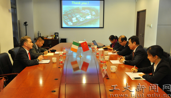 柳贡慧校长对凯恩校长和爱尔兰阿斯隆理工学院亚洲区总监孟晶先生一行的来访表示欢迎。蒋毅坚副校长和凯恩校长分别介绍了两校的办学情况及优势学科。双方表示愿意开展多层次、多领域的国际合作,特别是在材料、软件、生物制药等领域开展教师交换、科研合作,并开发双学位课程或联合培养项目。