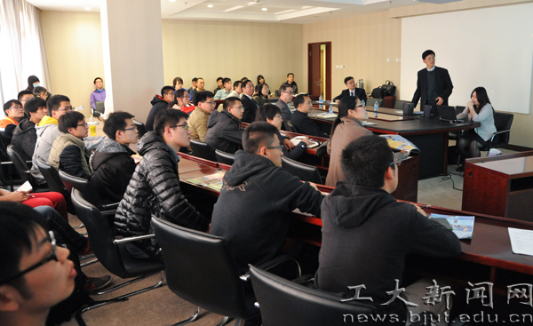 会见结束后,安正华主任做了主题为“ 2015年秋季班学生赴台湾交换——新竹交通大学说明会 ” 的宣讲,同学们就如何报名材料、未来培养计划、相关课程设置等方面提出了问题。
