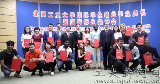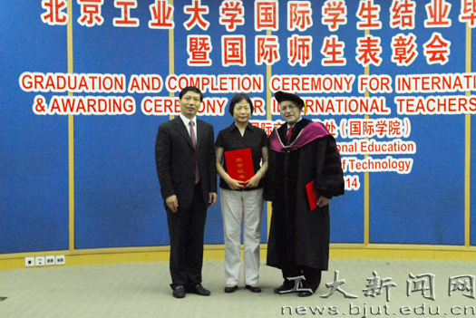 典礼表彰了获得 “特殊贡献奖”、“在学奖”的留学生,以及获得“突出贡献奖”的美籍教师林平分教授和加拿大籍教师Peter King教授。毕业生们为导师献上鲜花,表达对导师的感激之情。