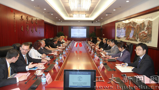 蒋毅坚副校长对奥波莱工业大学代表团来访表示欢迎,并回顾了两校自2008年合作举办孔子学院以来的合作历程,希望双方以奥波莱孔子学院为平台,加强两校间的教师交流和科研合作。Malik副校长介绍了此次代表团成员组成和奥波莱工业大学最新发展情况,并提议两校在孔子学院汉语教学的基础上,开展多样化的学生交流项目,加强学生对多元化文化的理解,促进两校合作向深层次发展。
