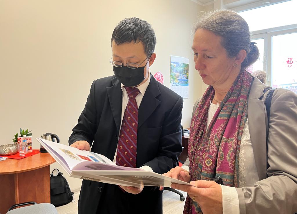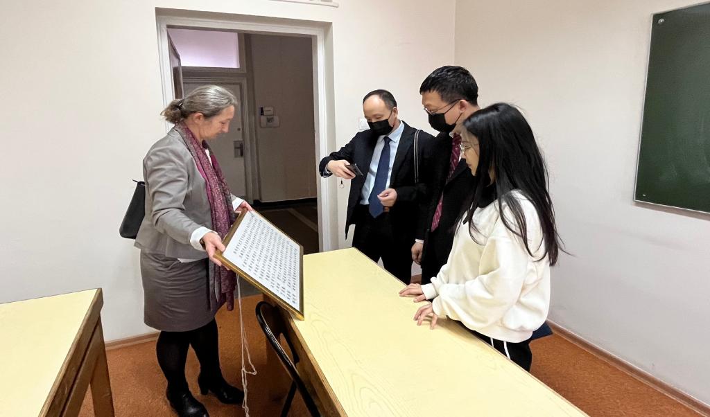 随后,伊沃娜带领参赞一行参观了孔课汉语教室。