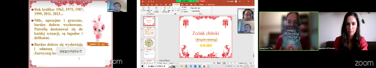 西里西亚大学孔子课堂举办了“迎兔年,贺新春”线上主题讲座和线下庆祝活动。讲座邀请了波兰作家Magdalena Wiśniewska女士及孔课教师们围绕中国人、中华文化和生肖故事等主题进行了座谈交流。
