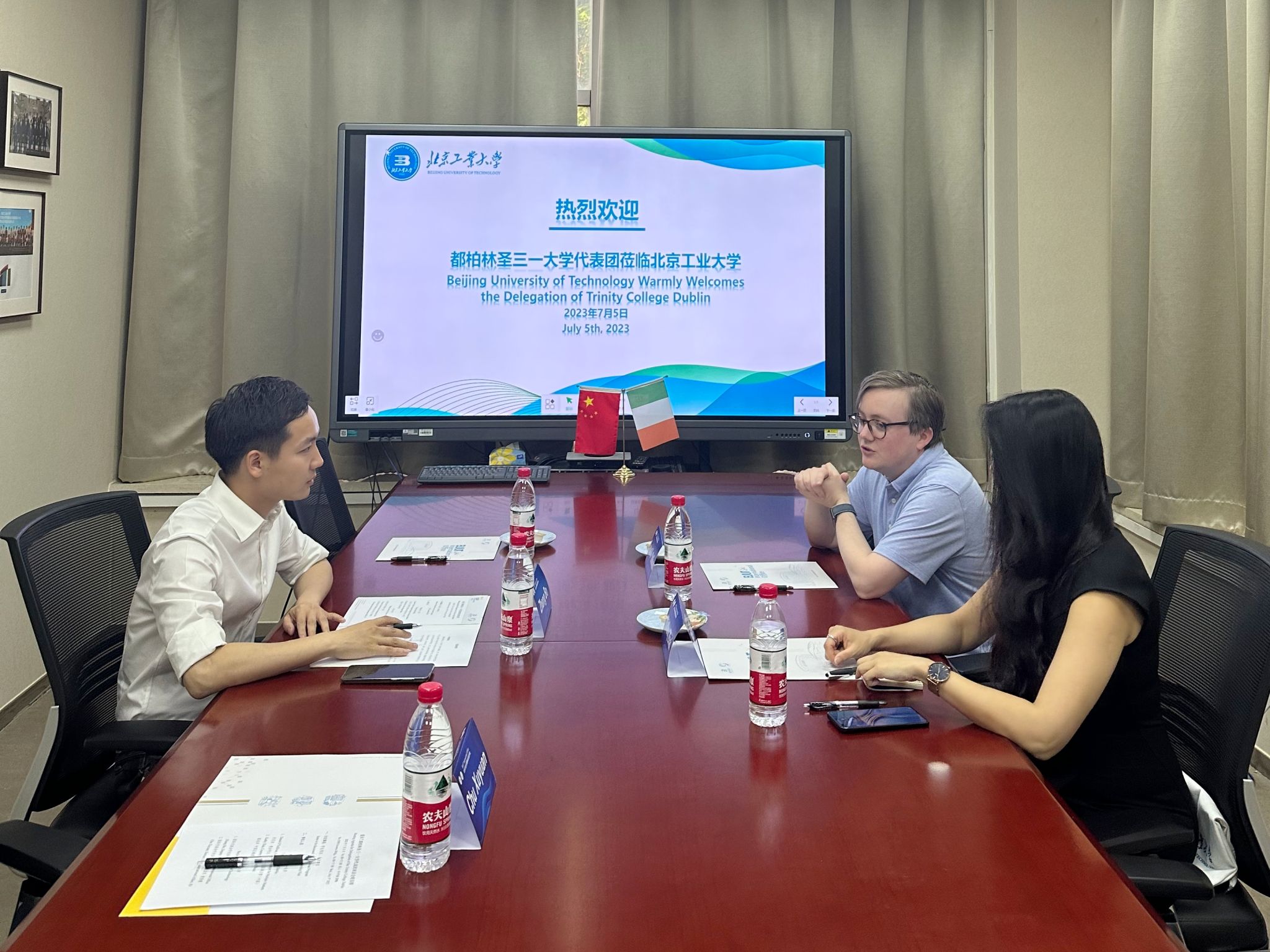 7月5日,爱尔兰都柏林圣三一大学国际办公室区域主管Daniel O’Sullivan、中国区域经理翟远洋一行二人到校访问,国际交流合作处负责人会见代表团一行。