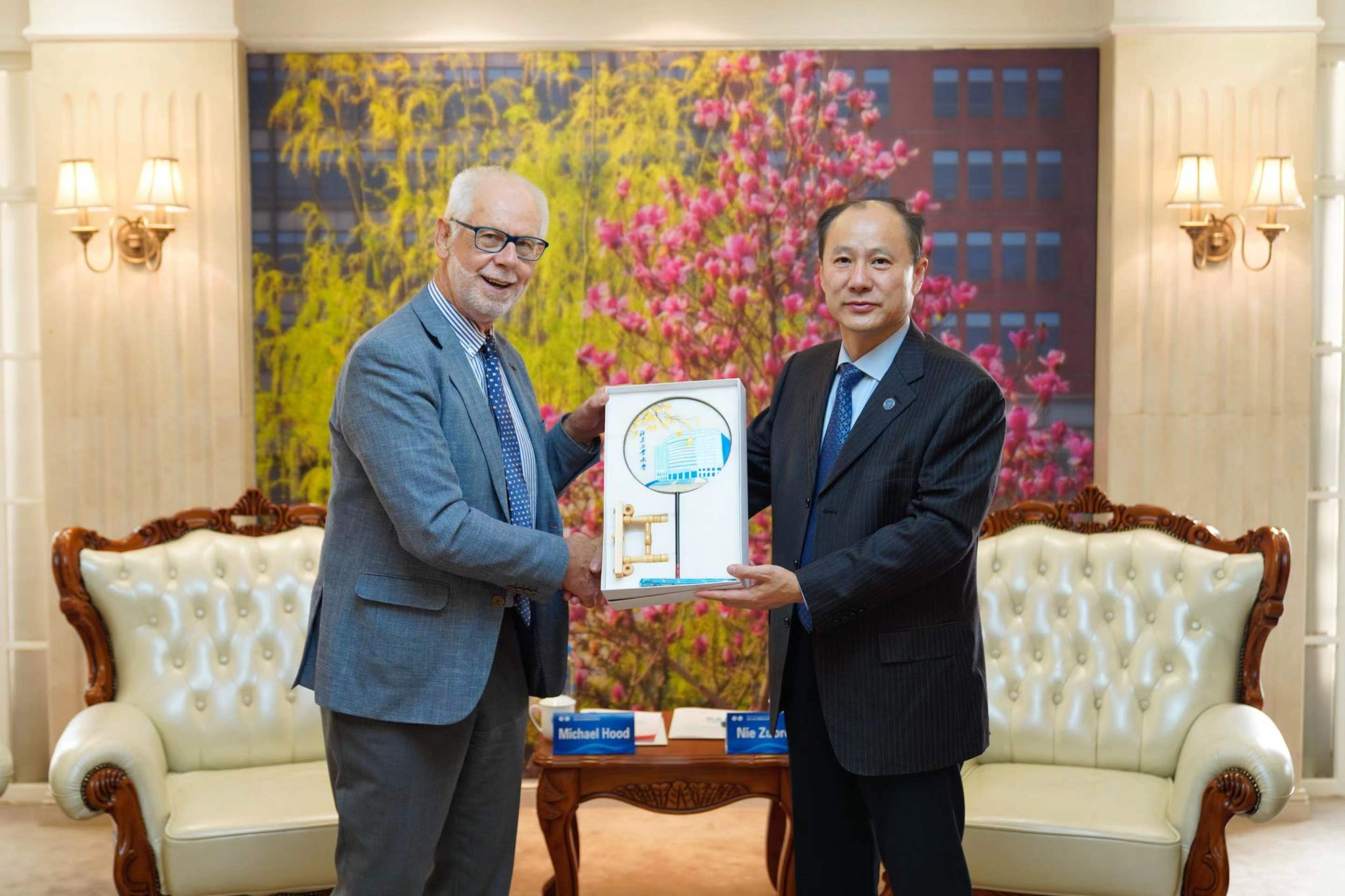 11月24日,澳大利亚技术科学与工程院院士、中国工程院外籍院士迈克尔·胡德(Michael Hood)一行到校访问。校党委副书记、校长聂祚仁会见胡德一行,党委常委、副校长乔俊飞,中国工程院国际合作局、北工大国际交流合作处、城市建设学部负责人陪同会见。