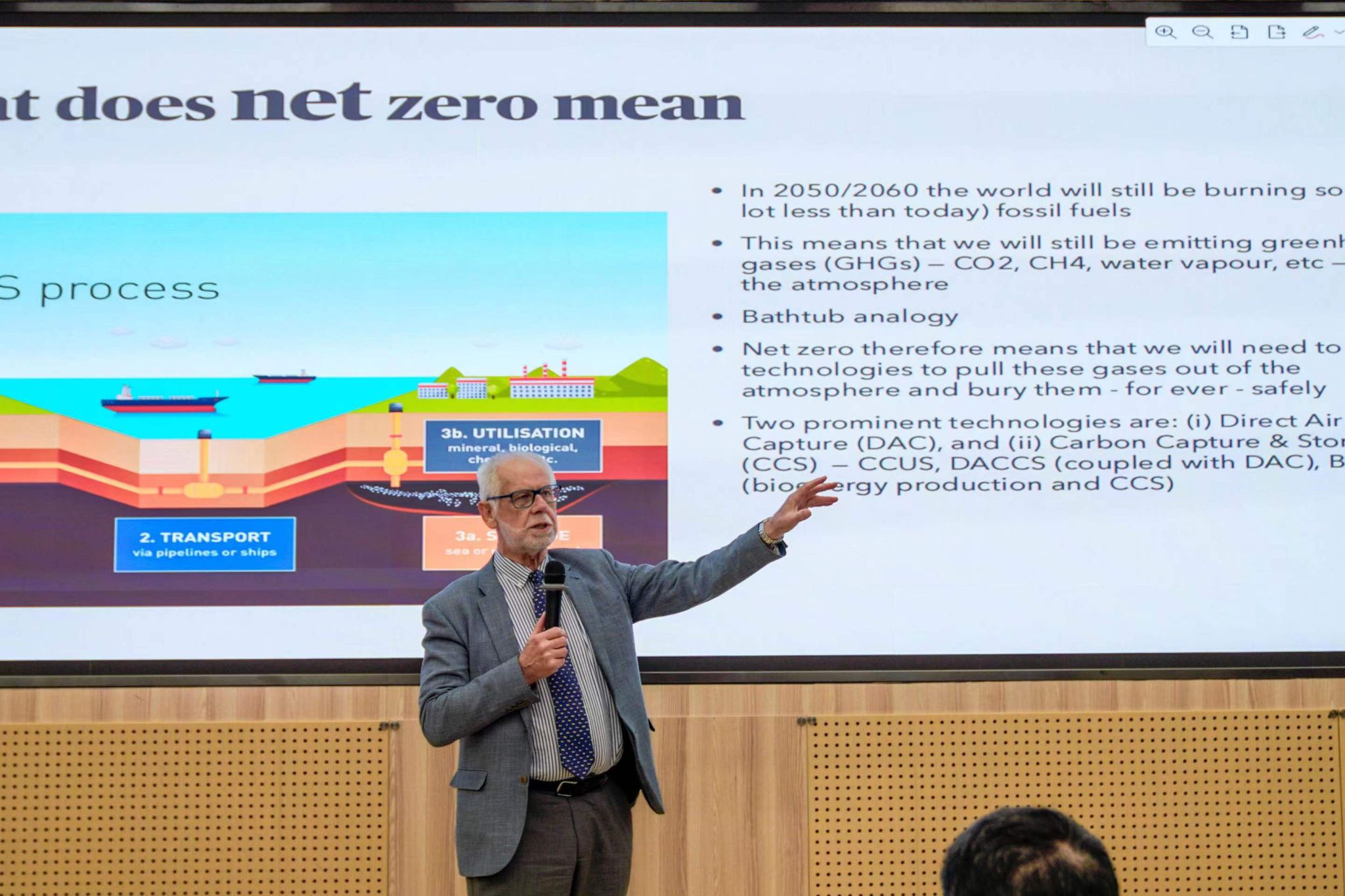 会后,胡德一行前往工程结构实验中心、岩土与地下工程试验中心参观交流,并面向相关师生作《向净零碳排放迈进》学术报告,现场反响热烈。