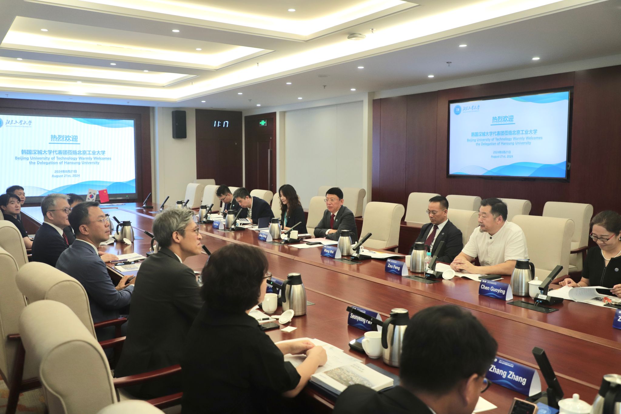 姜泽廷对汉城大学代表团表示欢迎并介绍了北工大的发展概况。他表示,学校秉承“植根首都、科技报国”初心使命,聚焦碳中和、城市更新、人工智能、高端智库等重点领域,以数字化、组织化、国际化赋能高质量发展,为北京“四个中心”,尤其是国际科技创新中心、国际交往中心建设作出积极贡献。他指出,高水平大学和全球知名企业是推动科技创新、提高综合国力的重要力量。2024年是中韩建交32周年,去年中韩元首的顺利会晤,充分彰显了两国深化友谊、加强合作的共同意愿。希望两校紧扣“以合作谋发展,以科技谋未来”的方向,在教育、科技、人才领域深化交流,不断推动产学研务实合作,为中韩友好关系的持续发展注入新动力。