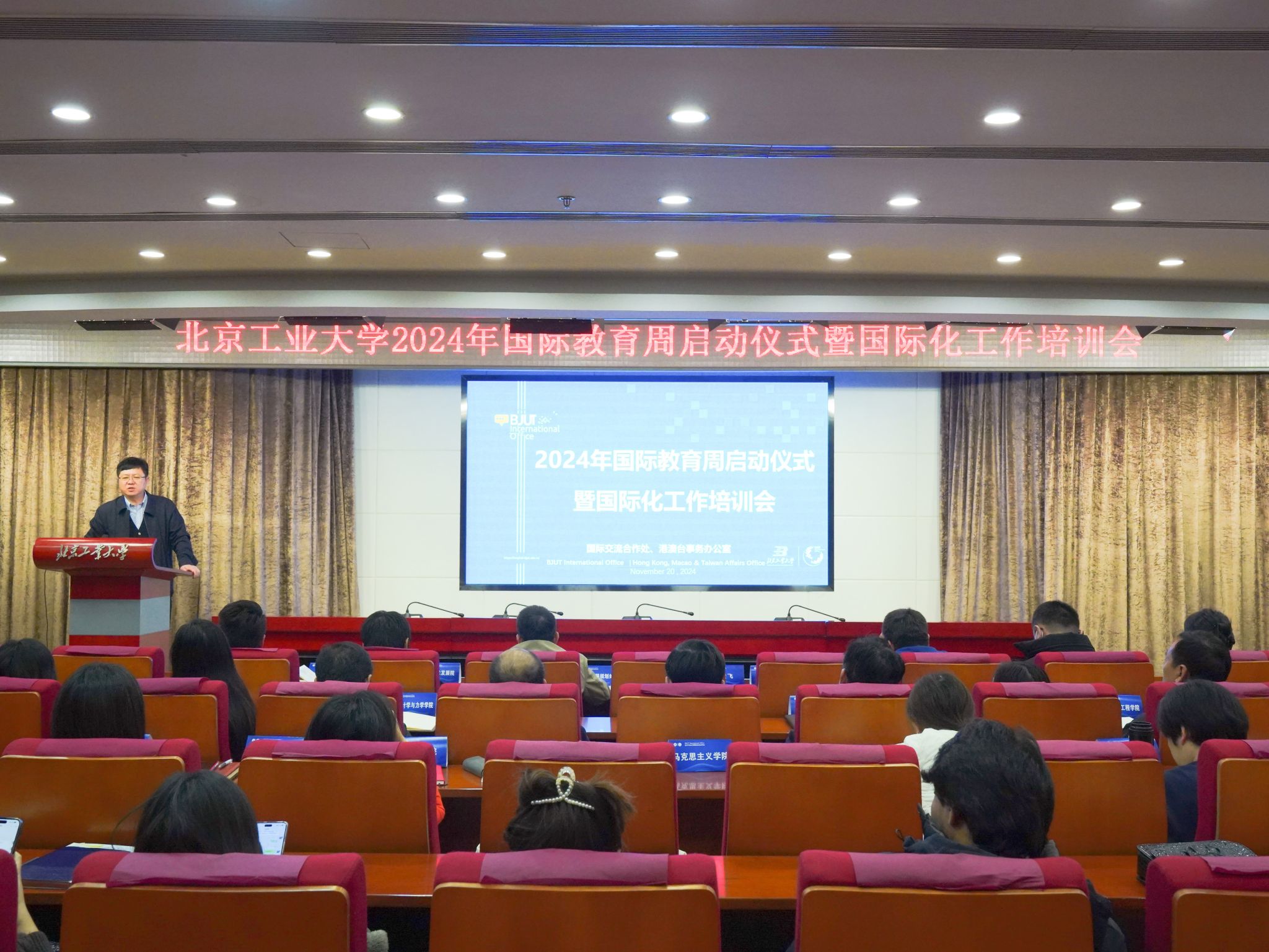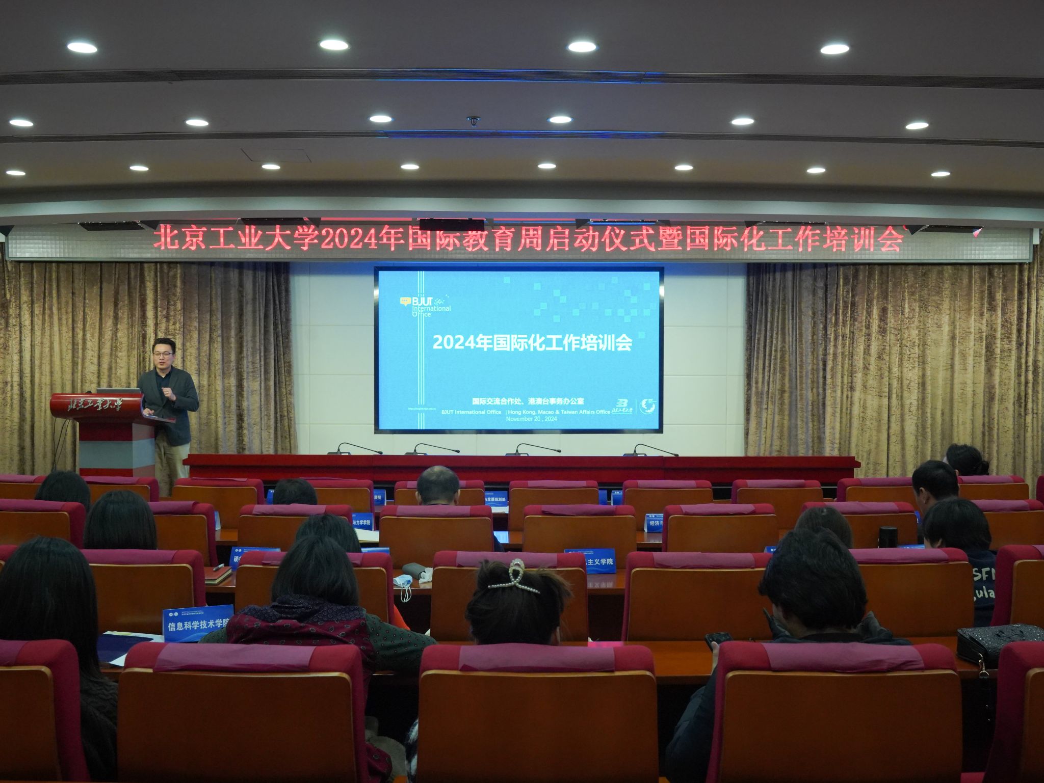11月20日,伟德国际唯一官网入口2024年度国际教育周启动仪式暨国际化工作培训会顺利举行。学校党委副书记乔俊飞出席会议并讲话。