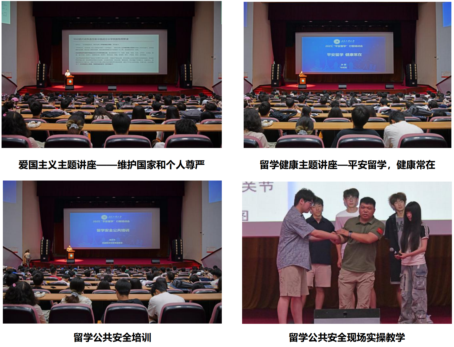 培训邀请马克思主义学院、校医院、德威安保集团专家组成讲师团队,分别围绕爱国主义教育、境外安全风险防范、留学身心健康管理、急救与自我防护技能等内容作专题报告。讲师们通过典型案例深度剖析、实操技能示范教学,全方位普及平安留学知识,为师生有效规避风险、妥善应对意外夯实了基础。